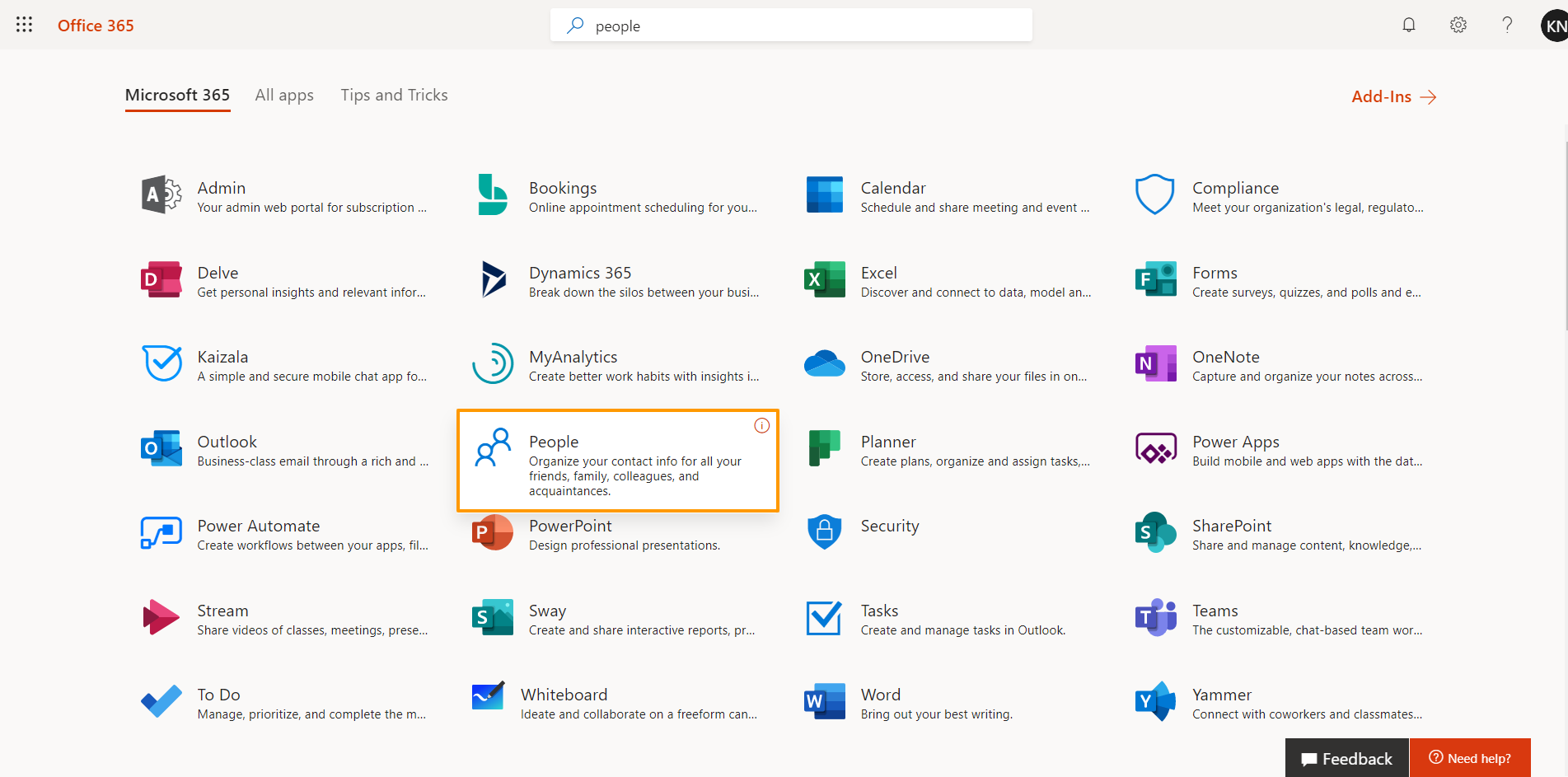 - Log into your Office 365 account with your registered email address. Once logged in, select the People’s App.