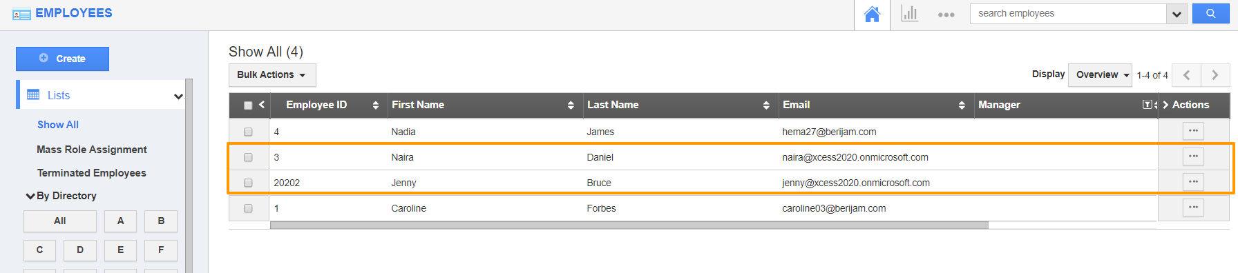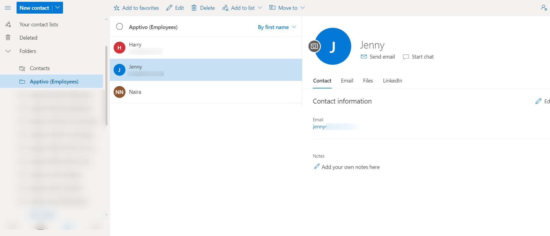 - In the People’s App, select the Office 365 Employee folder for Apptivo. The list of employees available will be listed.
