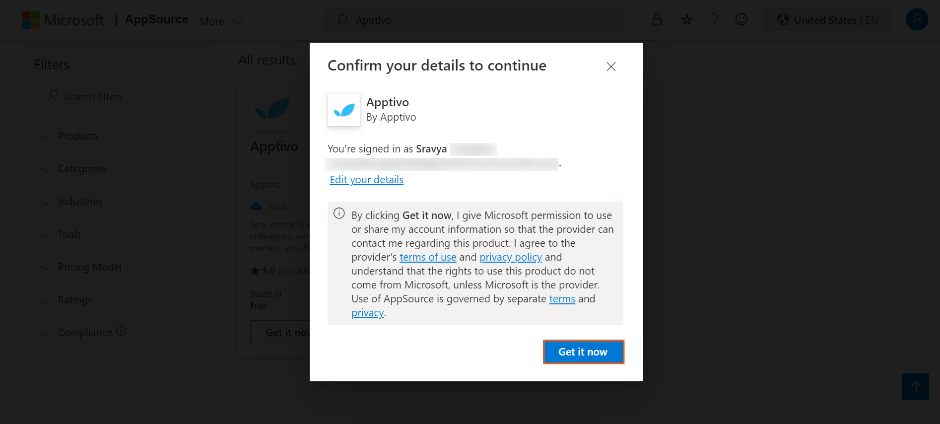 - Upon clicking, you’ll be asked for the confirmation of your email details, and click on Get it now.