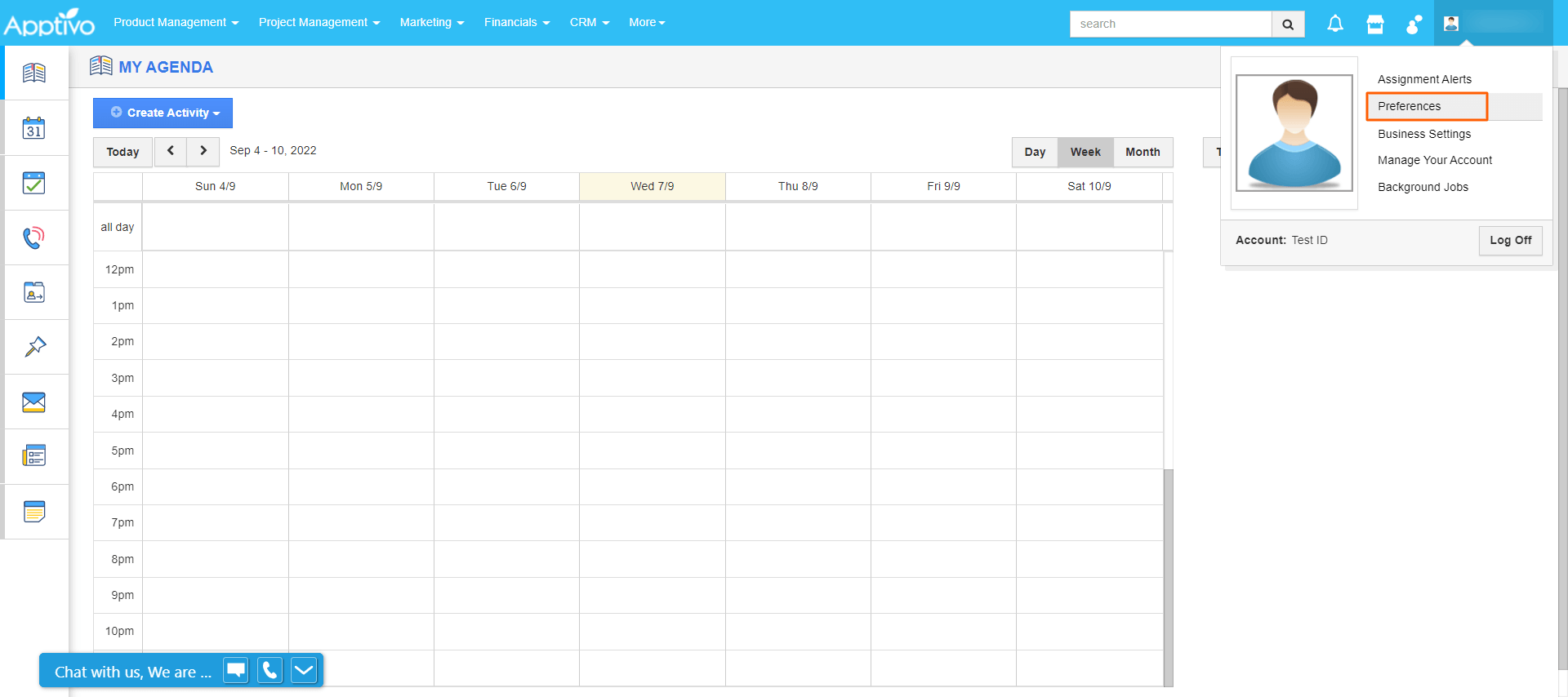 - Log into your Apptivo using your Microsoft account. and select Preferences from the user menu.
