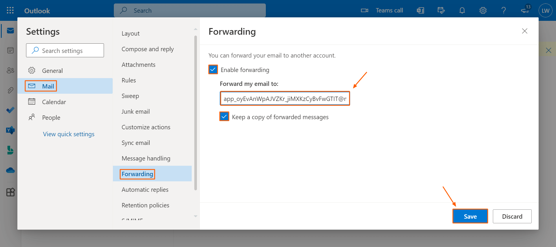 - Copy the Forwarding Email ID from your Apptivo account and paste it into the “Forwarding my Emails” field in Outlook Forwarding settings. Now, the emails will get synced with Apptivo.