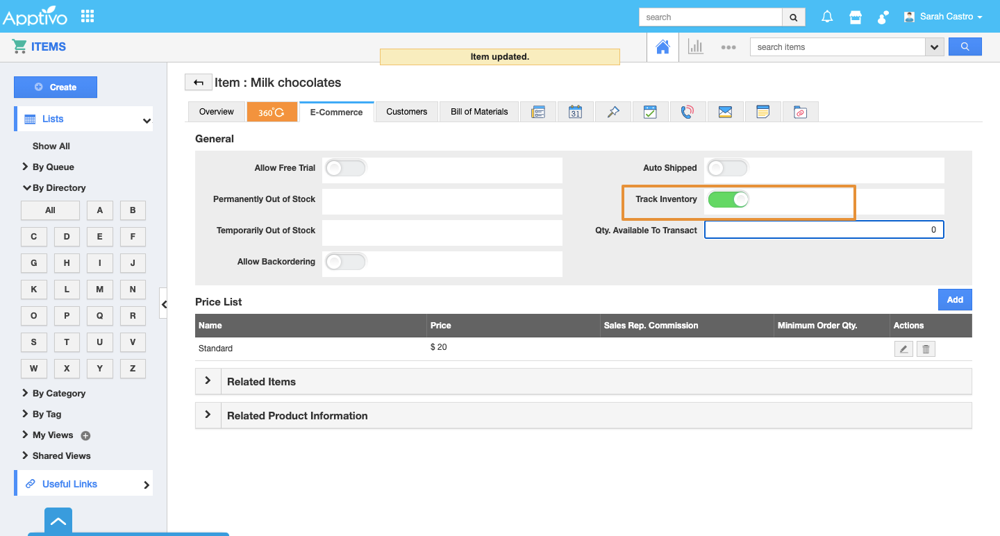 - Click on the toggle to enable the Track Inventory. Now you can view the "Track Inventory" updated in the image below: