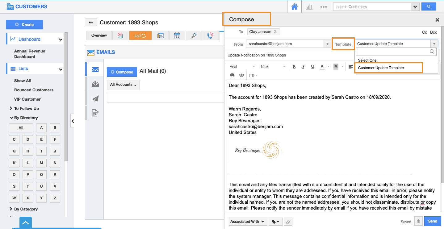 Email templates are pre-defined email formats. If you have to regularly send out the same emails to your leads, contacts, and customers, it saves time if you use email templates.