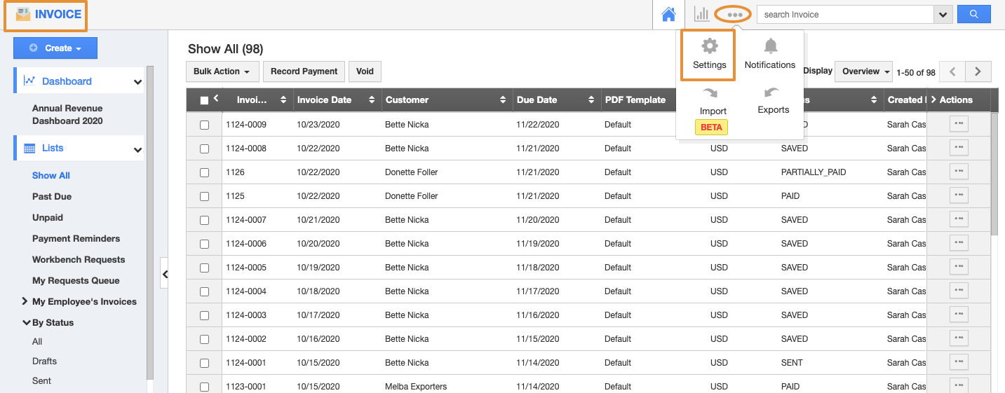 - Login and access the Invoices app from the universal menu.