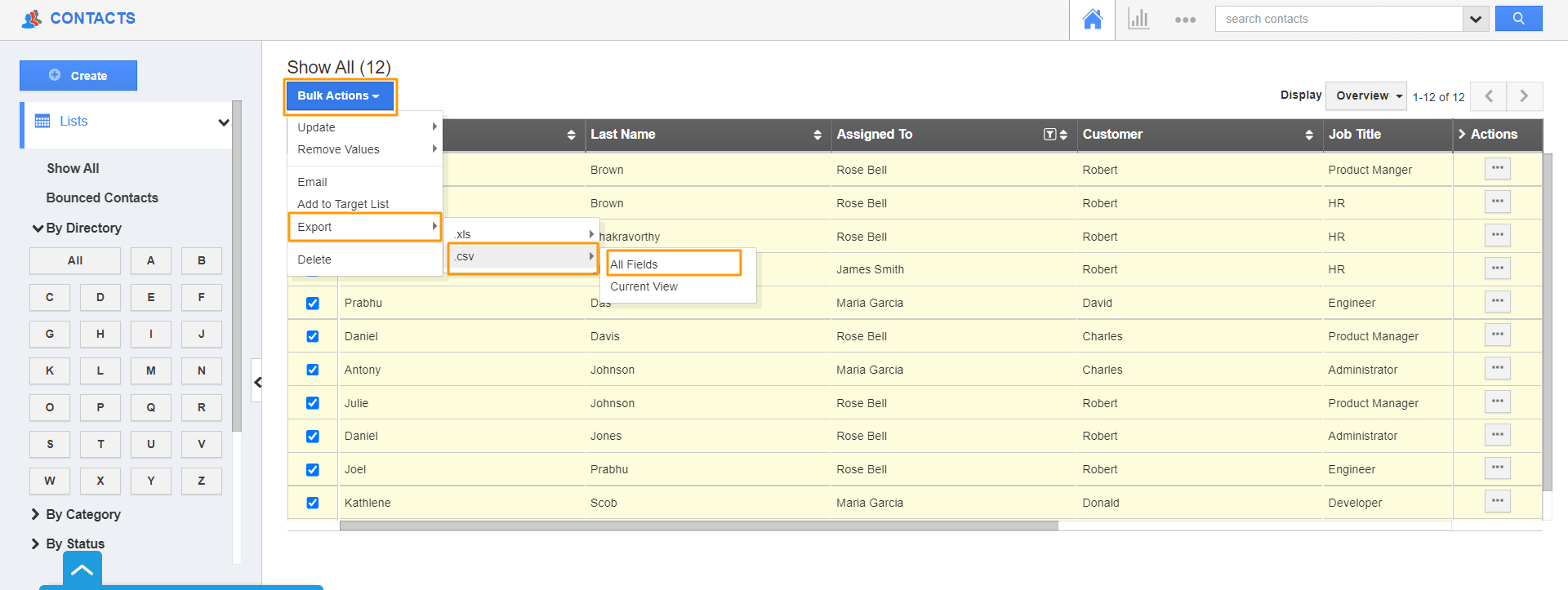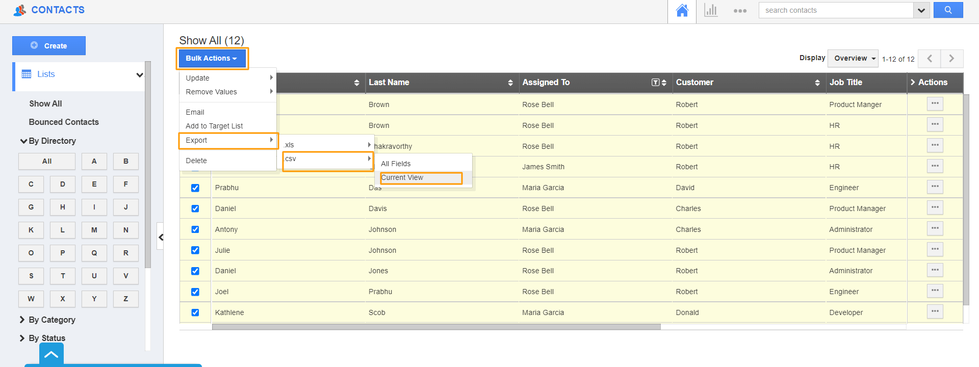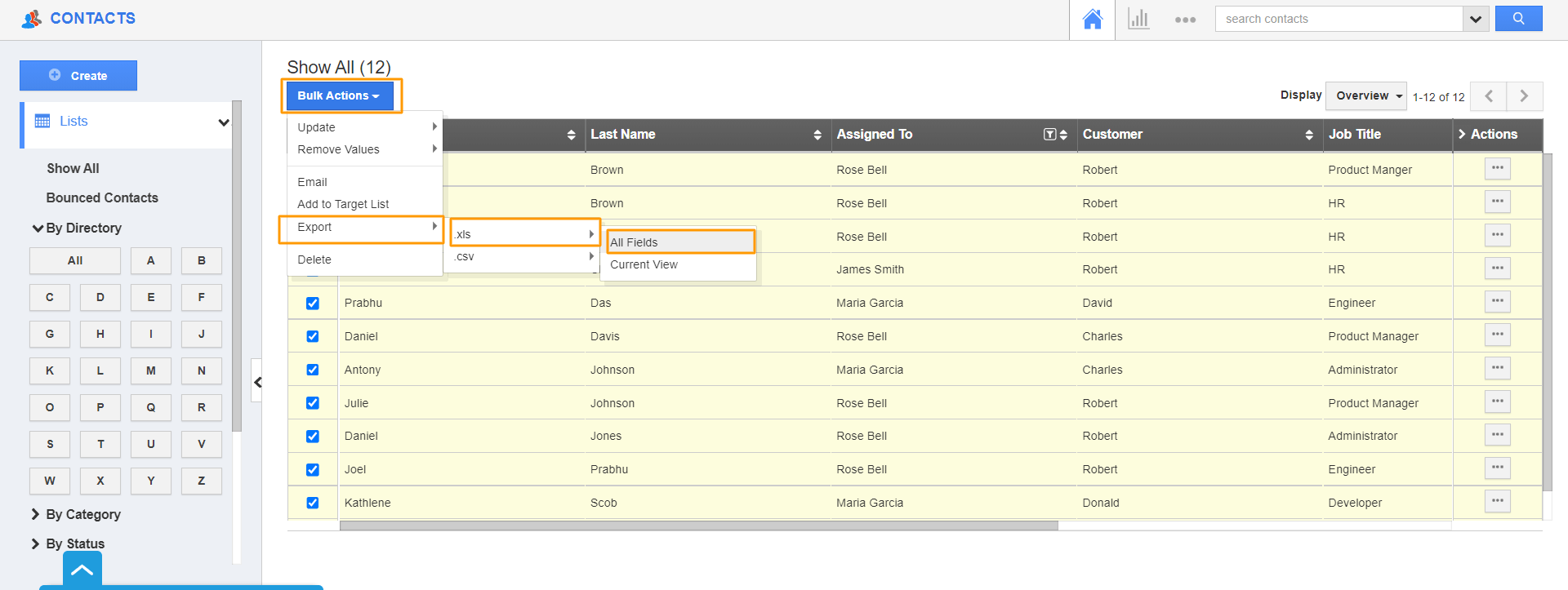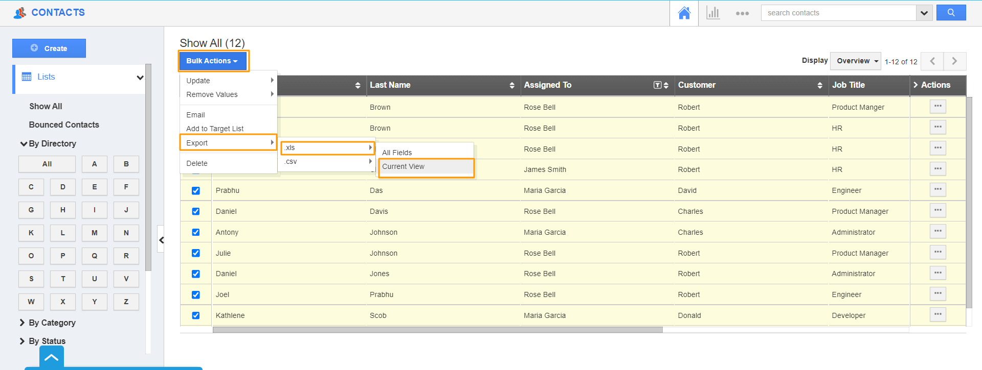 The Export feature allows you to export the contacts to save all your contact information into a spreadsheet. The Contacts app allows you to export contacts in both CSV and XLS format.