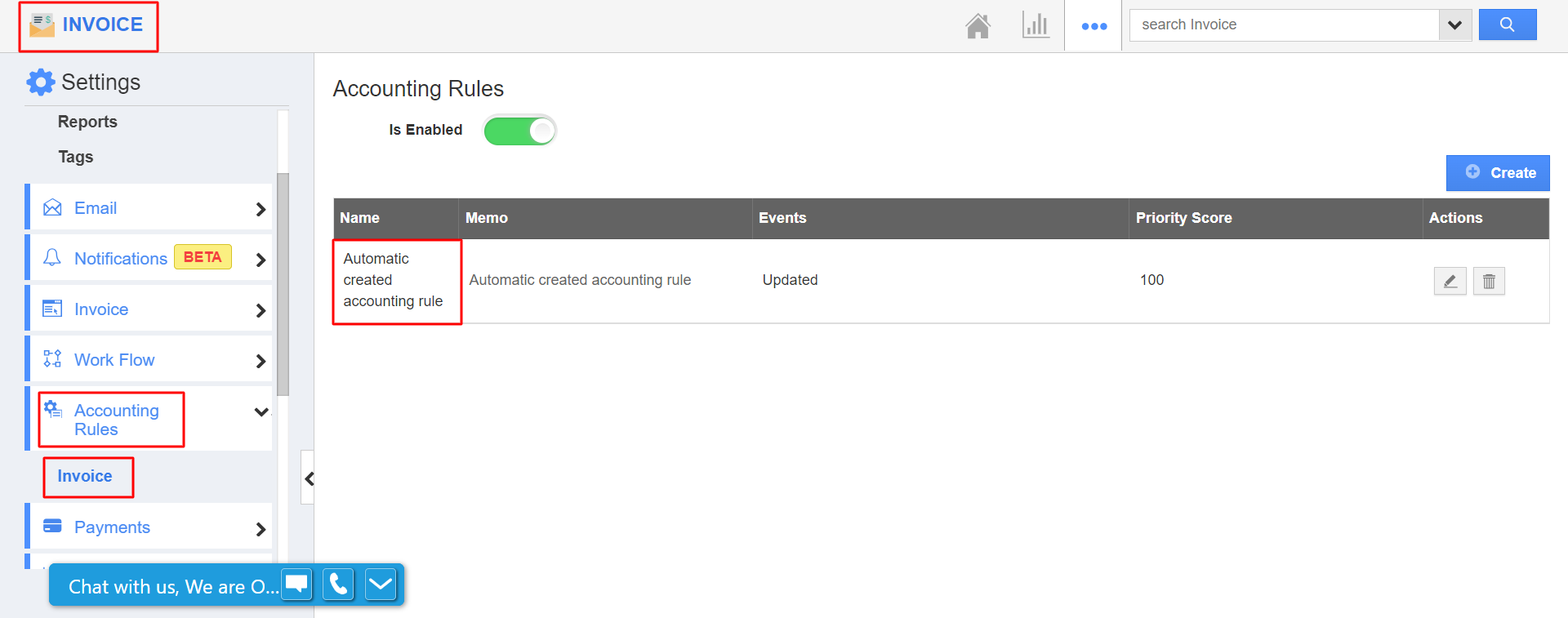- An accounting rule will be created automatically in the Invoices App as shown:
