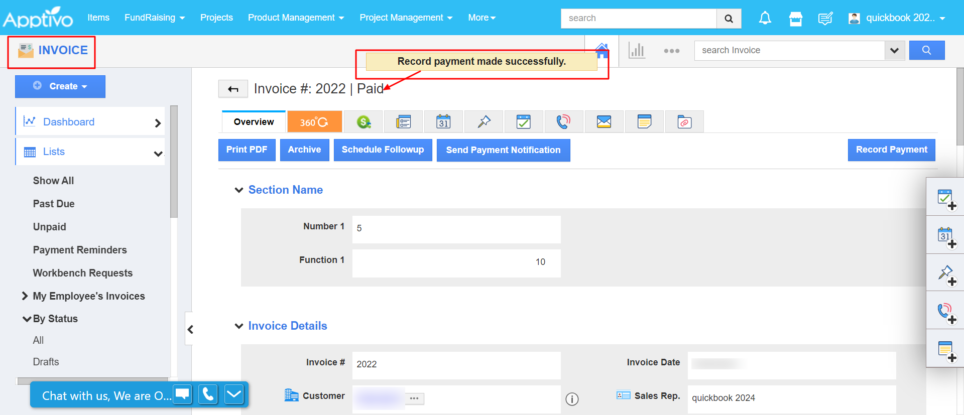 - Click on the "Record Payment" option and mark the Invoice as "Paid".