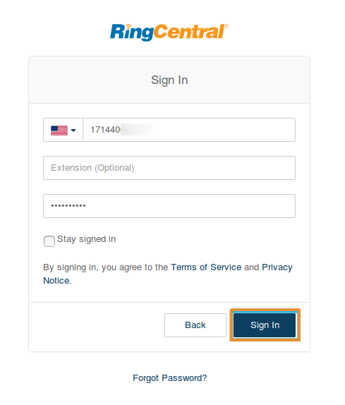 Logging in to RingCentral