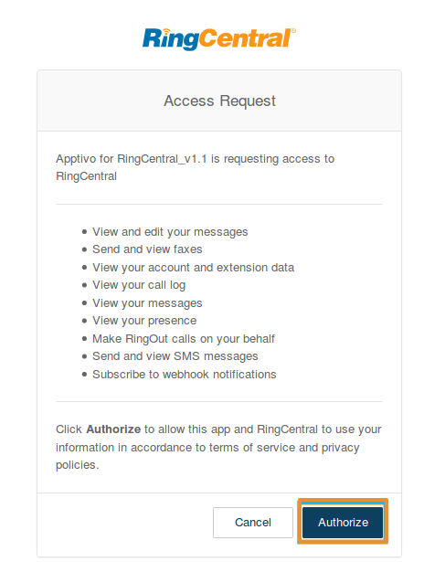 - Log in to your RingCentral account in Apptivo CRM