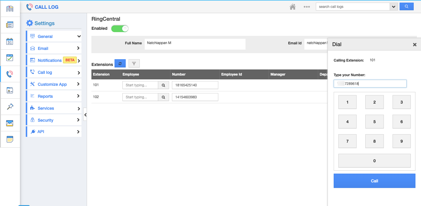 Synchronizing Call Log Between Apptivo CRM and RingCentral