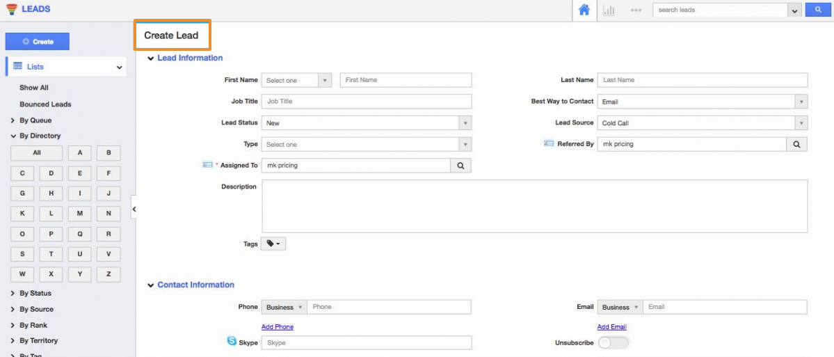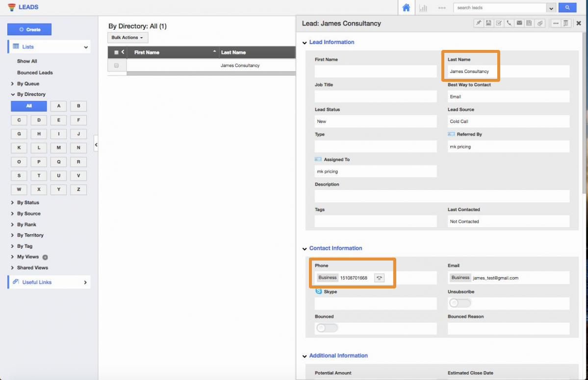 - Click on the desired record of the lead.