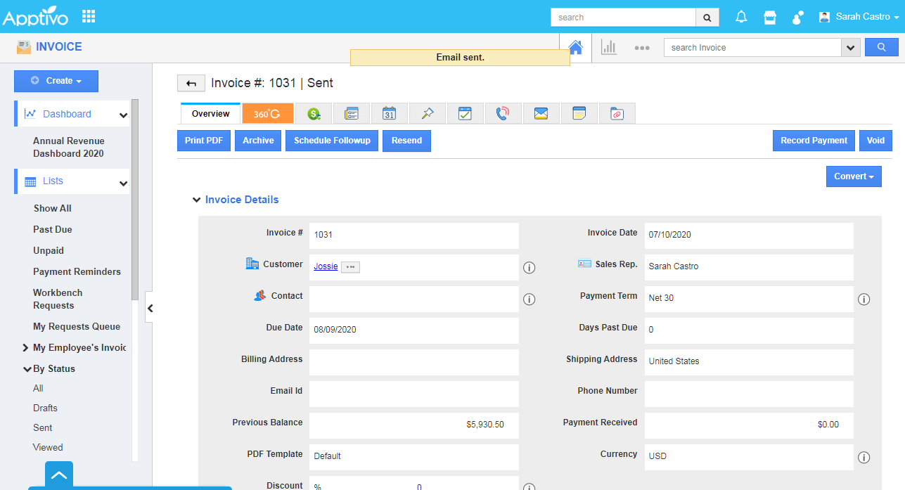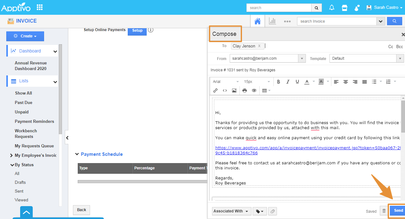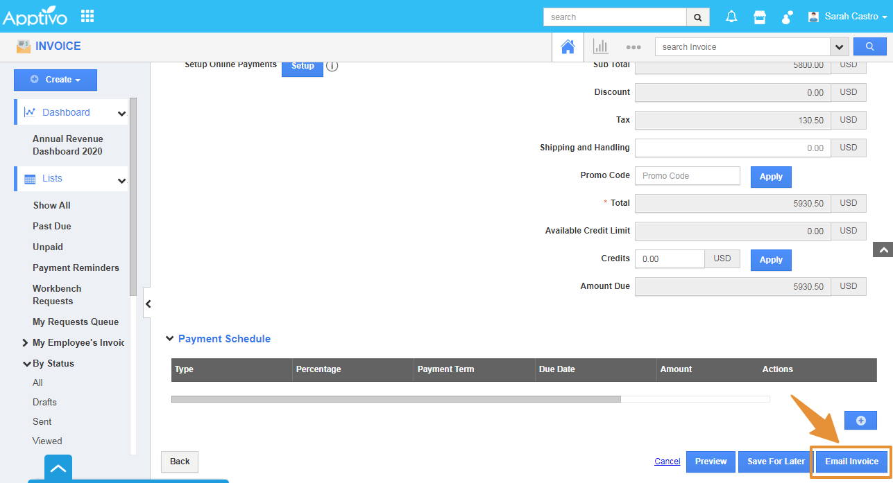 - Then, click on the Email Invoice button at the bottom of the page.