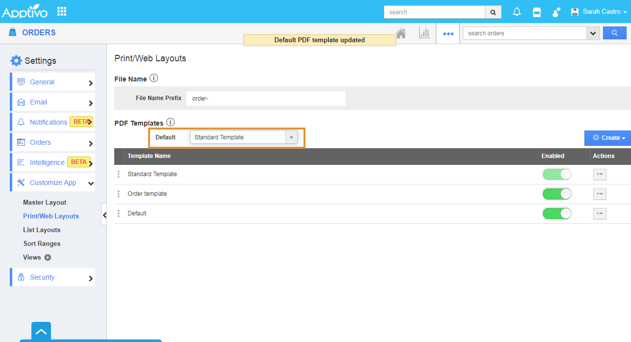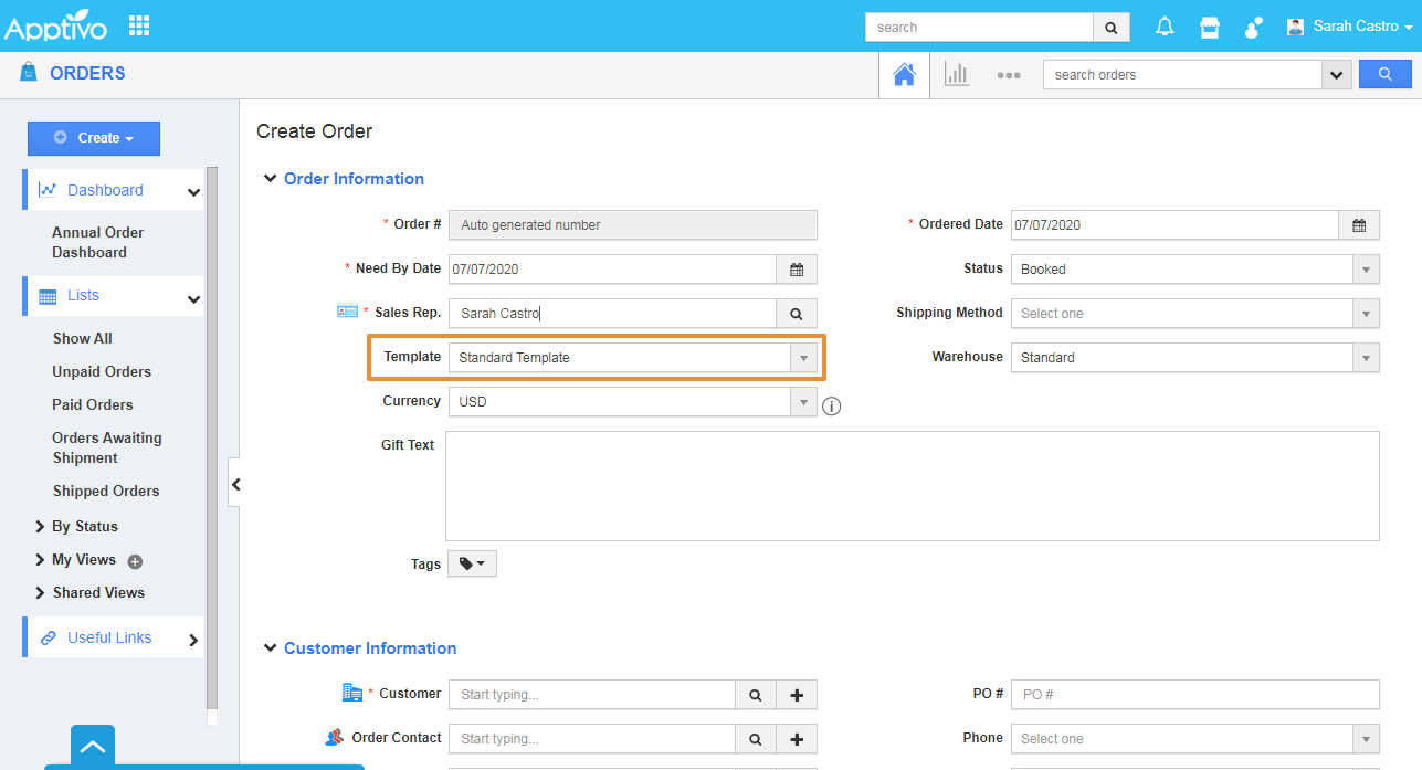 Orders App allows you to create your own custom templates to generate PDF versions of your Orders created. The customization can be done according to your business requirements.