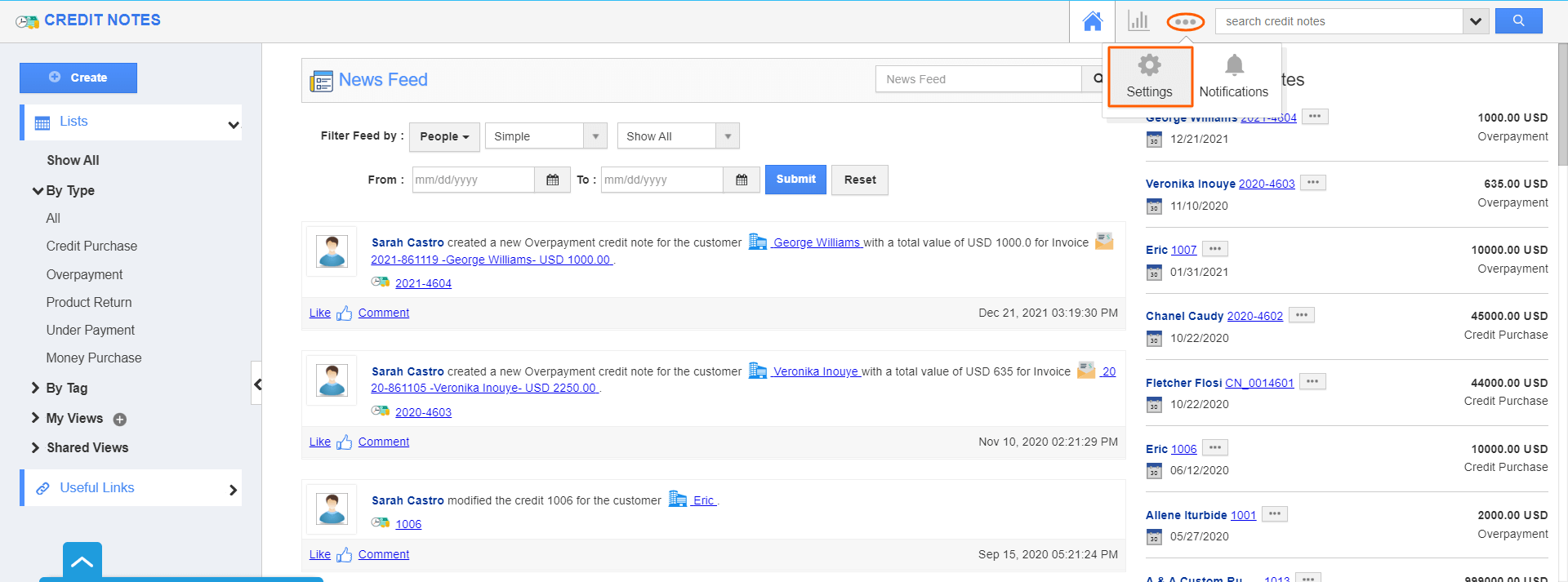 - Log in and access Credit Notes App from your Universal Navigation menu bar.