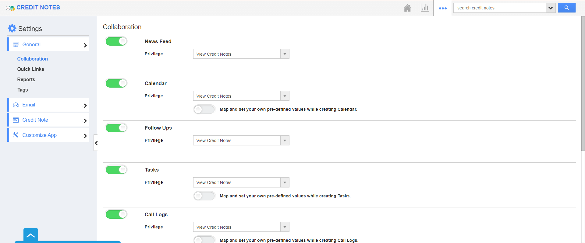 Credit Notes App has several groups of configuration settings that allow you to adjust the way the app functions. To configure your Credit Notes App.