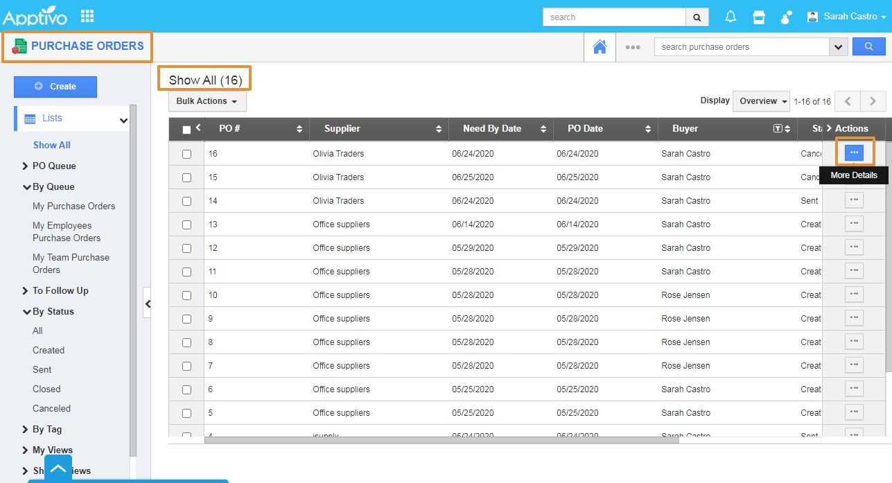 - Log in and access the Purchase Orders App from your universal navigation menu.